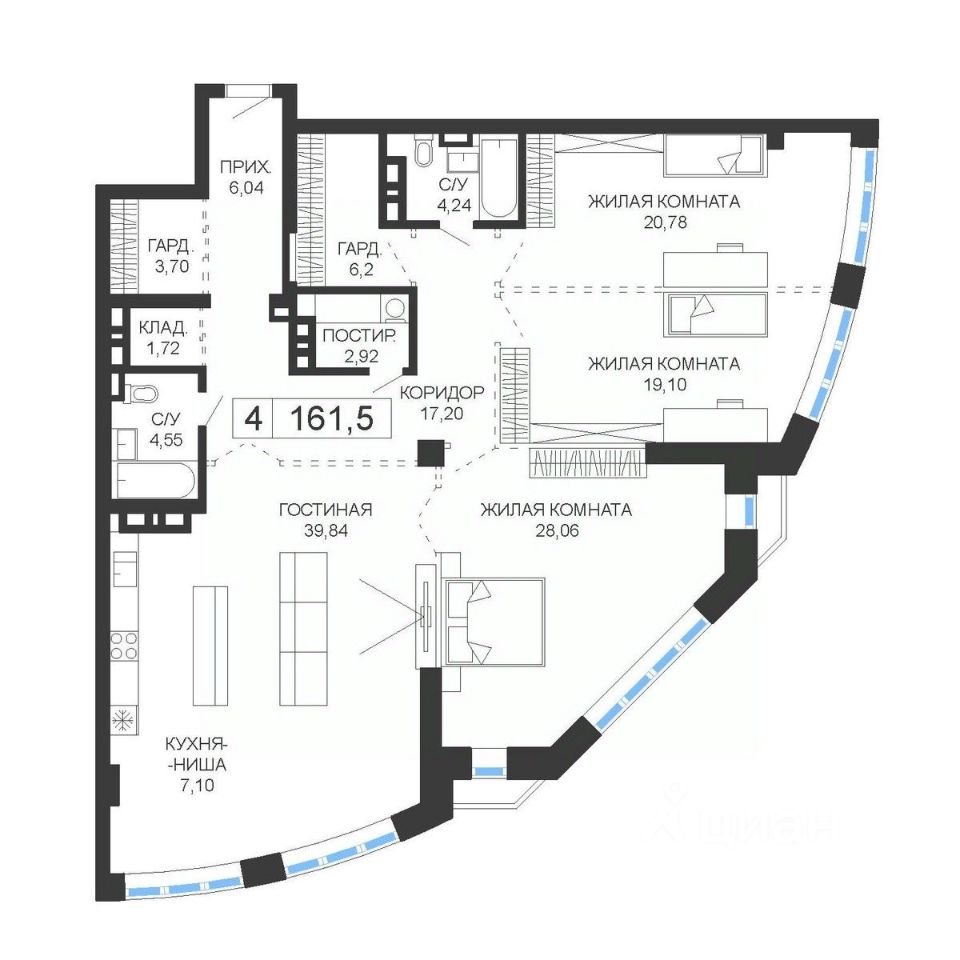 Продаётся 4-комнатная квартира в строящемся доме (Дом 1), срок сдачи: IV-кв. 2025, общей площадью 161.5 кв.м., на 15 этаже. ЖК представляет собой футуристический архитектурный ансамбль, состоящий из двух башен высотой 24 этажа и монументальной стилобатной части, на 5 этажах которой будут располагаться парковочная зона, а также современный торговый центр. Несмотря на слегка дерзкий вид башен, стремительно взмывающих вверх, они прекрасным образом гармонируют с окружающим пространством: солнечные лучи, играющие на зеркальной поверхности фасада, и отражающиеся на ней облака создают фантастический пространственный эффект! Высота наземной части зданий составляет 75 м., общая площадь насчитывает около 40 000 кв. м. - всё это 399 апартаментов свободной планировки, площадью от 97 до 200 кв. м. 192 апартамента.
