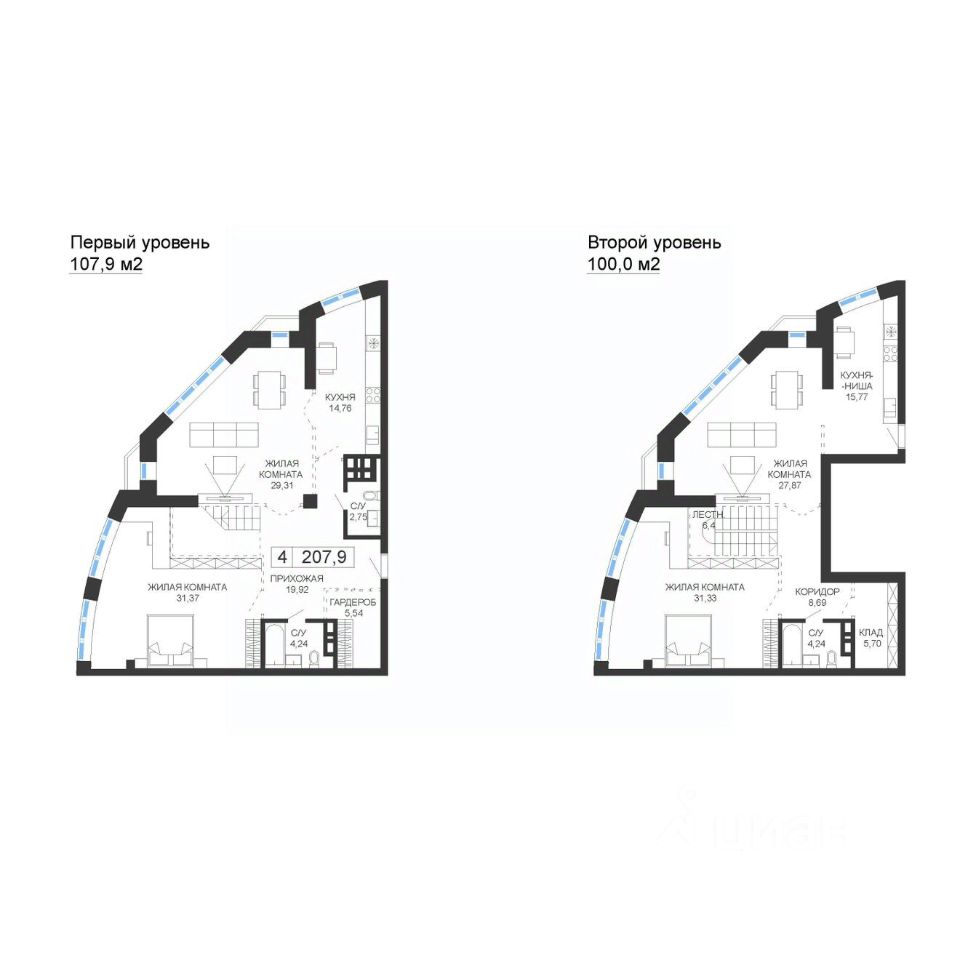 Продаётся 4-комнатная квартира в строящемся доме (Дом 1), срок сдачи: IV-кв. 2025, общей площадью 211.46 кв.м., на 23 этаже. ЖК представляет собой футуристический архитектурный ансамбль, состоящий из двух башен высотой 24 этажа и монументальной стилобатной части, на 5 этажах которой будут располагаться парковочная зона, а также современный торговый центр. Несмотря на слегка дерзкий вид башен, стремительно взмывающих вверх, они прекрасным образом гармонируют с окружающим пространством: солнечные лучи, играющие на зеркальной поверхности фасада, и отражающиеся на ней облака создают фантастический пространственный эффект! Высота наземной части зданий составляет 75 м., общая площадь насчитывает около 40 000 кв. м. - всё это 399 апартаментов свободной планировки, площадью от 97 до 200 кв. м. 192 апартамента.