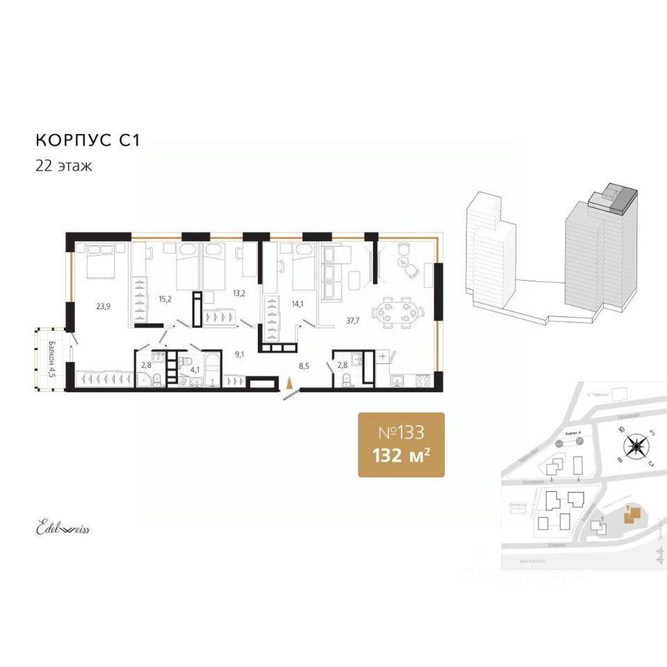 Группа компаний «Эдельвейс» создана в 2007 году. Опыт в девелопменте с 2013 года. «Эдельвейс» формирует запрос на современное, эстетичное и функциональное пространство для жизни, которое выходит за пределы квартиры и продолжается в доме, во дворе и район...