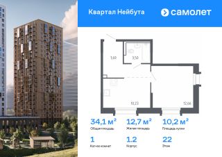Строим кварталы для жизни с заботой о будущем. Предлагается 1-комнатная квартира комфорт-класса 34,08 кв.м в корпусе 1.2 на 22 этаже, в ЖК "Квартал Нейбута"