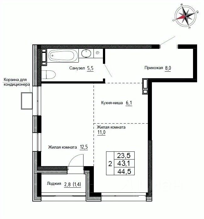 Продаётся 2-комнатная квартира в строящемся доме (Дом 1), срок сдачи: III-кв. 2026, общей площадью 44.1 кв.м., на 13 этаже. ЖК "Новый" - это: