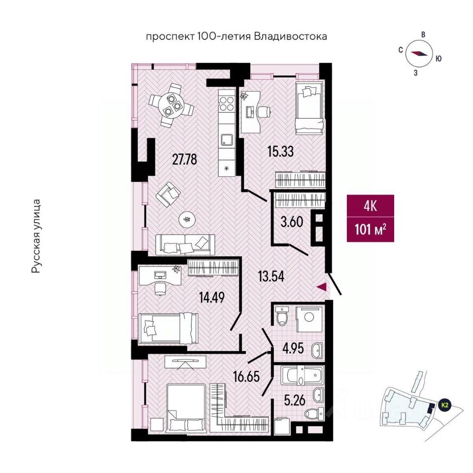 STARK навсегда изменит карту Владивостока, как и ваши представления о недвижимости бизнес-класса. 7 башен переменной этажности возвысятся над городом в исторически значимом районе Второй речки. Вас ждёт бескомпромиссный комфорт с индивидуально подобранными застройщиком резидентами коммерческих пространств, первая в городе 2-уровневая набережная вдоль русла Второй речки и 58 200 квадратных метров паркового благоустройства в рамках глобального редевелопмента территории. А ещё: внушительный выбор функциональных и просторных планировочных решений, предусматривающих возможность самостоятельного зонирования площади и реализации любых дизайнерских решений в соответствии с индивидуальными потребностями семьи, доступны варианты недвижимости с 2 санузлами; высокие 3-метровые потолки и витражное остекление, обеспечивающие высокий уровень естественного освещения пространства квартиры; умопомрачительные панорамные виды на город с сопками на горизонте, благоустроенную прогулочную набережную вдоль русла Второй речки, водную акваторию Амурского залива; высокая транспортная доступность, расположение в непосредственной близости от главной дорожной развязки Второй речки "Автовокзал Кольцо Багратиона, Проспект 100-летия Владивостока Фабрика Заря" (350 м); индивидуально подобранные застройщиком резиденты коммерческой недвижимости, с целью достижения оптимального баланса между общественными пространствами, заведениями и сервисами, на территории квартала: детский сад, медицинский центр, аптека, SPA-комплекс, салон красоты, гипермаркет, магазины, рестораны, кафе, булочная-кондитерская; развитая социальная инфраструктура микрорайона, в пешей доступности: частные детские сады и школы, входящие в городские рейтинги, медицинские центры, стоматологические клиники, фитнес-клубы, торговый центр, гипермаркеты, рестораны, аптеки, зоомагазины, химчистка и заведения сферы услуг, обслуживающие все потребности горожан; приватное благоустроенное пространство без машин для отдыха на внутренней стилобатной части комплекса с прогулочными зонами, детскими и спортивными площадками, куда могут попасть только жители квартала и их гости; закрытая охраняемая территория, контроль доступа по биометрии, видеонаблюдение по всему периметру с системой распознавания лиц, консьерж-сервис в лобби, лапомойка и колясочная; 2-уровневый крытый паркинг в стилобате здания с машино-местами увеличенной площади до 27,56 кв. м и прямым доступом к лифтовой зоне; индивидуальные келлеры на -1 и 1 уровнях комплекса для хранения сезонных вещей и спортивного инвентаря площадью до 49,77 кв. м; 5 грузопассажирских лифтов в каждой башне с возможностью дистанционного вызова и грузоподъемностью 630 кг, 1000 кг, 1350 кг; отдельные шахты для монтажа и обслуживания кондиционеров, скрытые за фасадом, чтобы с эстетической точки зрения не портить облик башен. Открыты продажи в башнях 1, 2 и 3.