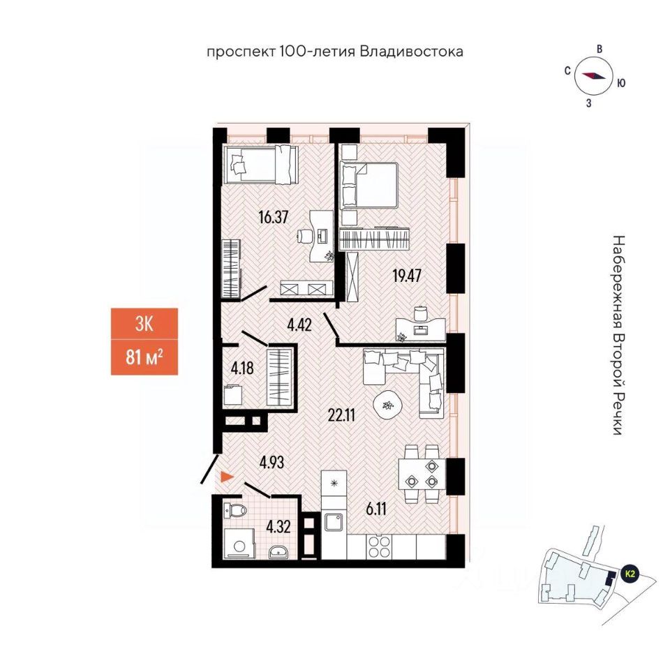 STARK навсегда изменит карту Владивостока, как и ваши представления о недвижимости бизнес-класса. 7 башен переменной этажности возвысятся над городом в исторически значимом районе Второй речки. Вас ждёт бескомпромиссный комфорт с индивидуально подобранными застройщиком резидентами коммерческих пространств, первая в городе 2-уровневая набережная вдоль русла Второй речки и 58 200 квадратных метров паркового благоустройства в рамках глобального редевелопмента территории. А ещё: внушительный выбор функциональных и просторных планировочных решений, предусматривающих возможность самостоятельного зонирования площади и реализации любых дизайнерских решений в соответствии с индивидуальными потребностями семьи, доступны варианты недвижимости с 2 санузлами; высокие 3-метровые потолки и витражное остекление, обеспечивающие высокий уровень естественного освещения пространства квартиры; умопомрачительные панорамные виды на город с сопками на горизонте, благоустроенную прогулочную набережную вдоль русла Второй речки, водную акваторию Амурского залива; высокая транспортная доступность, расположение в непосредственной близости от главной дорожной развязки Второй речки "Автовокзал Кольцо Багратиона, Проспект 100-летия Владивостока Фабрика Заря" (350 м); индивидуально подобранные застройщиком резиденты коммерческой недвижимости, с целью достижения оптимального баланса между общественными пространствами, заведениями и сервисами, на территории квартала: детский сад, медицинский центр, аптека, SPA-комплекс, салон красоты, гипермаркет, магазины, рестораны, кафе, булочная-кондитерская; развитая социальная инфраструктура микрорайона, в пешей доступности: частные детские сады и школы, входящие в городские рейтинги, медицинские центры, стоматологические клиники, фитнес-клубы, торговый центр, гипермаркеты, рестораны, аптеки, зоомагазины, химчистка и заведения сферы услуг, обслуживающие все потребности горожан; приватное благоустроенное пространство без машин для отдыха на внутренней стилобатной части комплекса с прогулочными зонами, детскими и спортивными площадками, куда могут попасть только жители квартала и их гости; закрытая охраняемая территория, контроль доступа по биометрии, видеонаблюдение по всему периметру с системой распознавания лиц, консьерж-сервис в лобби, лапомойка и колясочная; 2-уровневый крытый паркинг в стилобате здания с машино-местами увеличенной площади до 27,56 кв. м и прямым доступом к лифтовой зоне; индивидуальные келлеры на -1 и 1 уровнях комплекса для хранения сезонных вещей и спортивного инвентаря площадью до 49,77 кв. м; 5 грузопассажирских лифтов в каждой башне с возможностью дистанционного вызова и грузоподъемностью 630 кг, 1000 кг, 1350 кг; отдельные шахты для монтажа и обслуживания кондиционеров, скрытые за фасадом, чтобы с эстетической точки зрения не портить облик башен. Открыты продажи в башнях 1, 2 и 3.