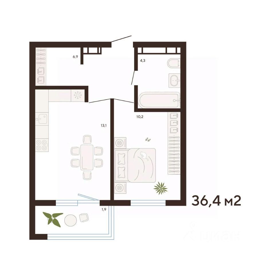36,4 м²