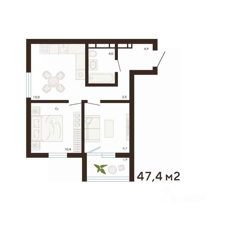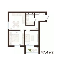 47,4 м²