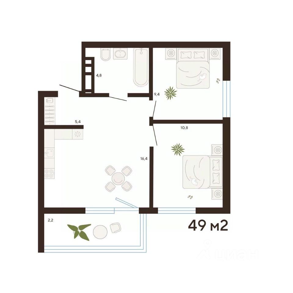 49 м²