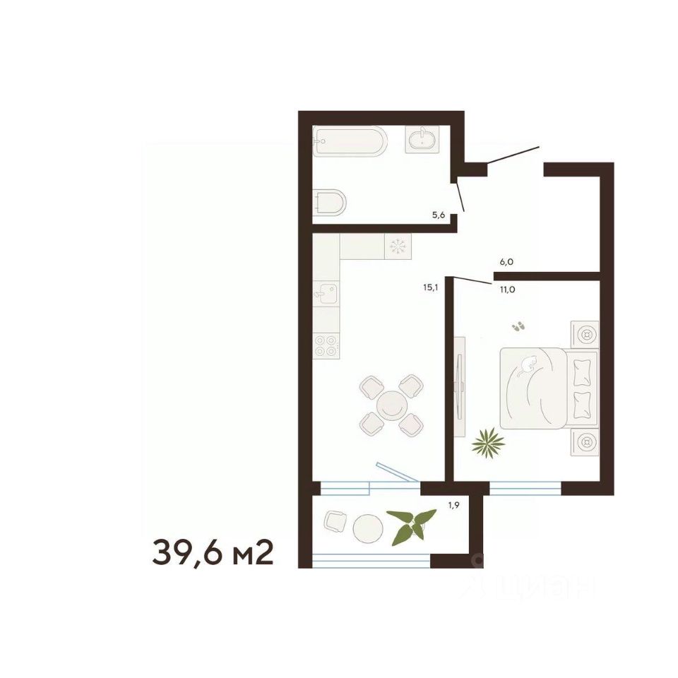 39,6 м²