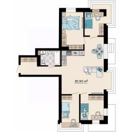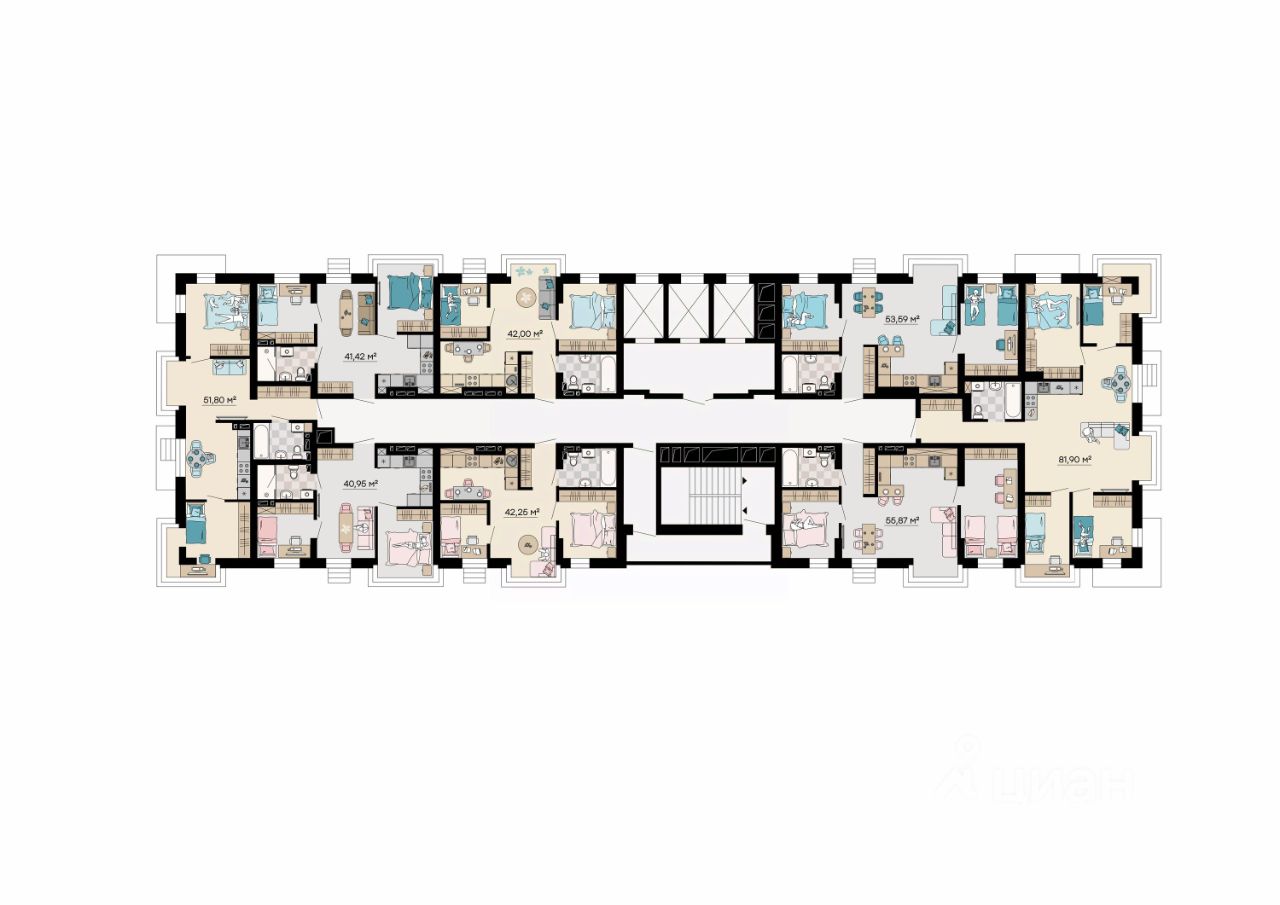 Широкоформатные квартиры свободной планировки формата Smart-vision площадью от 39,56 кв. м до 81,9 кв. м позволяют реализовать любые планировочные решения, а эркерные окна увеличенного размера открывают головокружительный вид на Амурский залив, низководный мост и завораживающий лесной массив. Проектом предусмотрены широкие коридоры мест общего пользования 2,4 м, просторный лифтовой холл площадью 37 кв. м и вестибюль 15,68 кв. м.