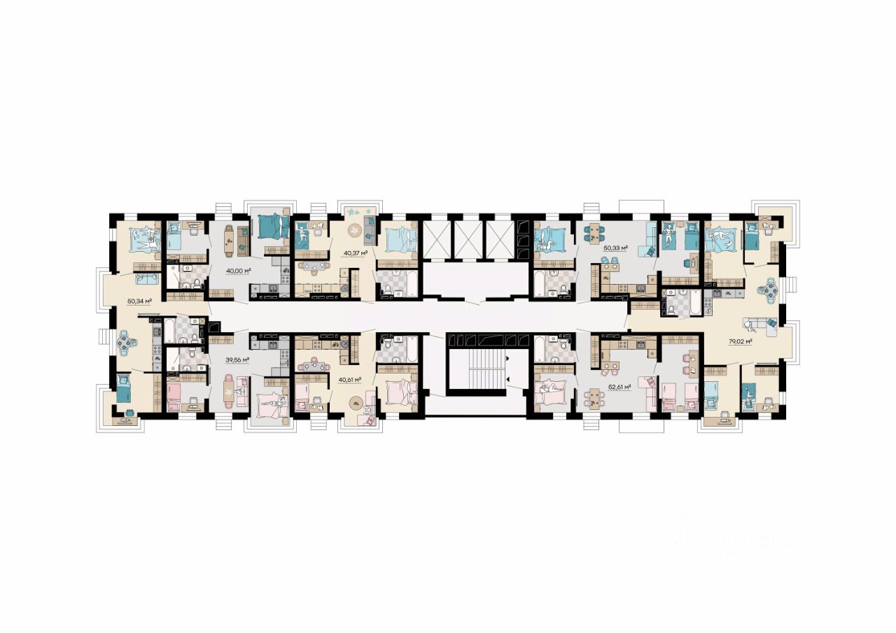 Широкоформатные квартиры свободной планировки формата Smart-vision площадью от 39,56 кв. м до 81,9 кв. м позволяют реализовать любые планировочные решения, а эркерные окна увеличенного размера открывают головокружительный вид на Амурский залив, низководный мост и завораживающий лесной массив. Проектом предусмотрены широкие коридоры мест общего пользования 2,4 м, просторный лифтовой холл площадью 37 кв. м и вестибюль 15,68 кв. м.