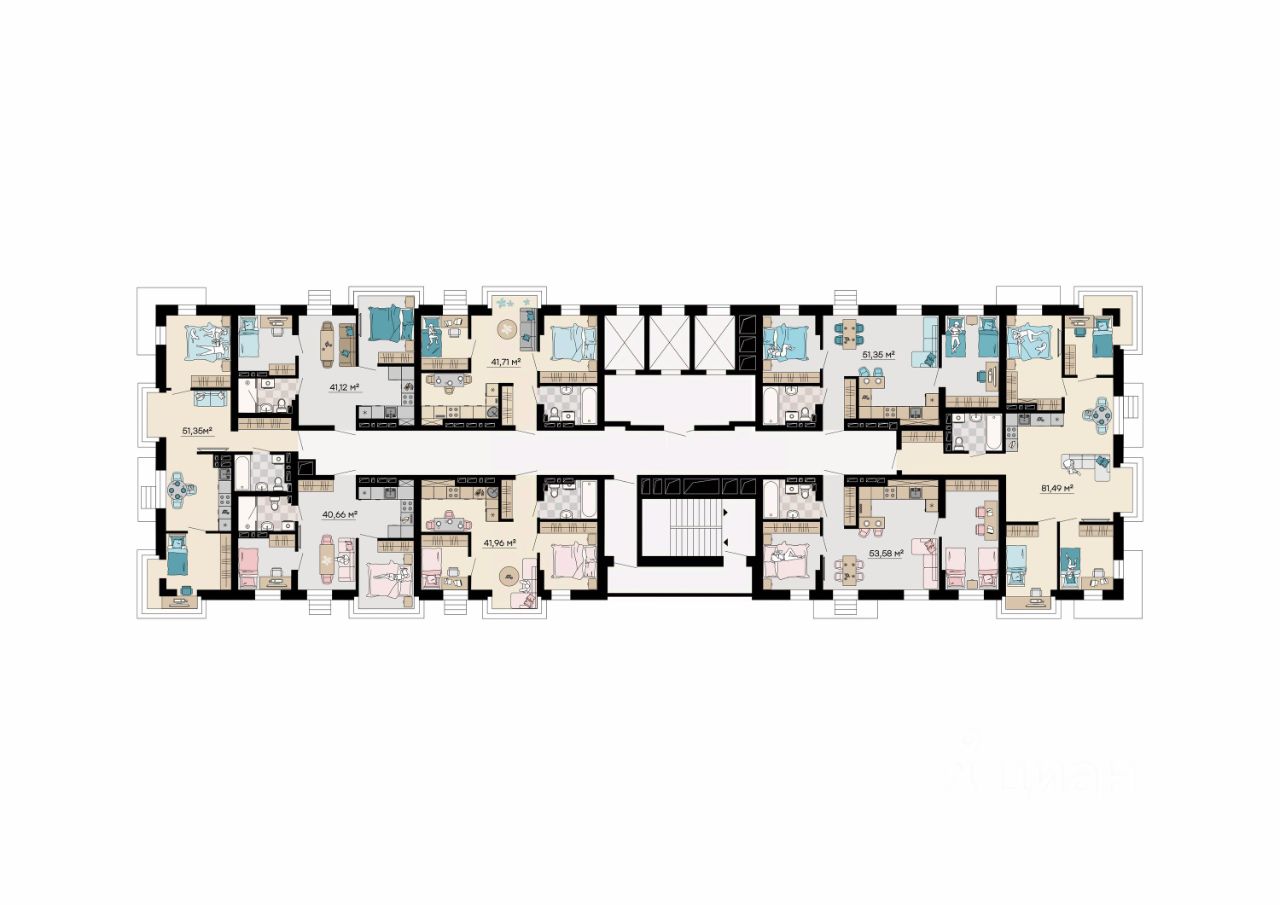 Широкоформатные квартиры свободной планировки формата Smart-vision площадью от 39,56 кв. м до 81,9 кв. м позволяют реализовать любые планировочные решения, а эркерные окна увеличенного размера открывают головокружительный вид на Амурский залив, низководный мост и завораживающий лесной массив. Проектом предусмотрены широкие коридоры мест общего пользования 2,4 м, просторный лифтовой холл площадью 37 кв. м и вестибюль 15,68 кв. м.