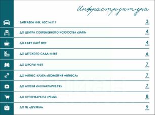 Развита социальная инфраструктура микрорайона, поблизости: пляж, медицинская клиника, стоматология, детский сад, школа, почта, торговый центр, фитнес-клуб, центр современного искусства и конноспортивный клуб.