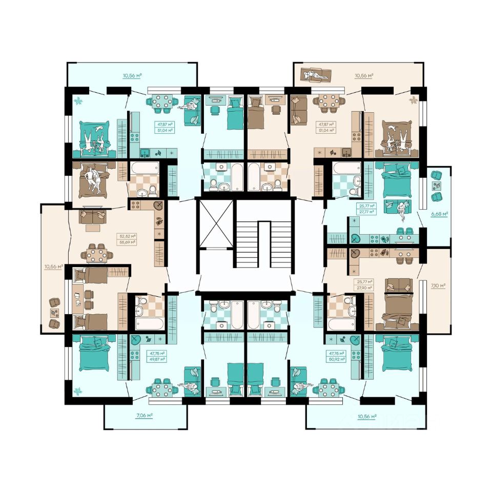 Квартиры формата Smart Comfort + (смарт комфорт +) площадью от 32 кв. м до 136 кв. м предоставляют свободу в реализации планировочных решений, а высота потолков 2,7 м с увеличенными панорамными окнами 2,45 м обеспечивают высокий уровень естественного освещения и открывают завораживающий обзор на лесной массив загородной местности.