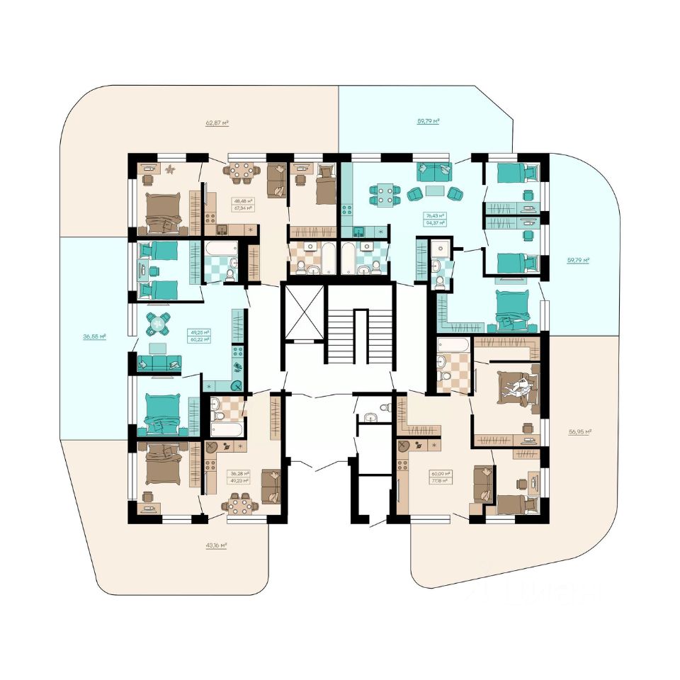Квартиры формата Smart Comfort + (смарт комфорт +) площадью от 32 кв. м до 136 кв. м предоставляют свободу в реализации планировочных решений, а высота потолков 2,7 м с увеличенными панорамными окнами 2,45 м обеспечивают высокий уровень естественного освещения и открывают завораживающий обзор на лесной массив загородной местности.
