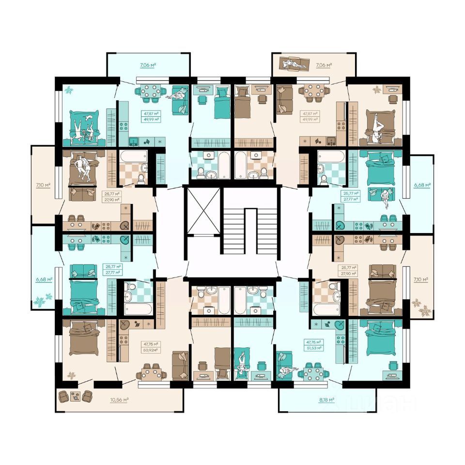Квартиры формата Smart Comfort + (смарт комфорт +) площадью от 32 кв. м до 136 кв. м предоставляют свободу в реализации планировочных решений, а высота потолков 2,7 м с увеличенными панорамными окнами 2,45 м обеспечивают высокий уровень естественного освещения и открывают завораживающий обзор на лесной массив загородной местности.
