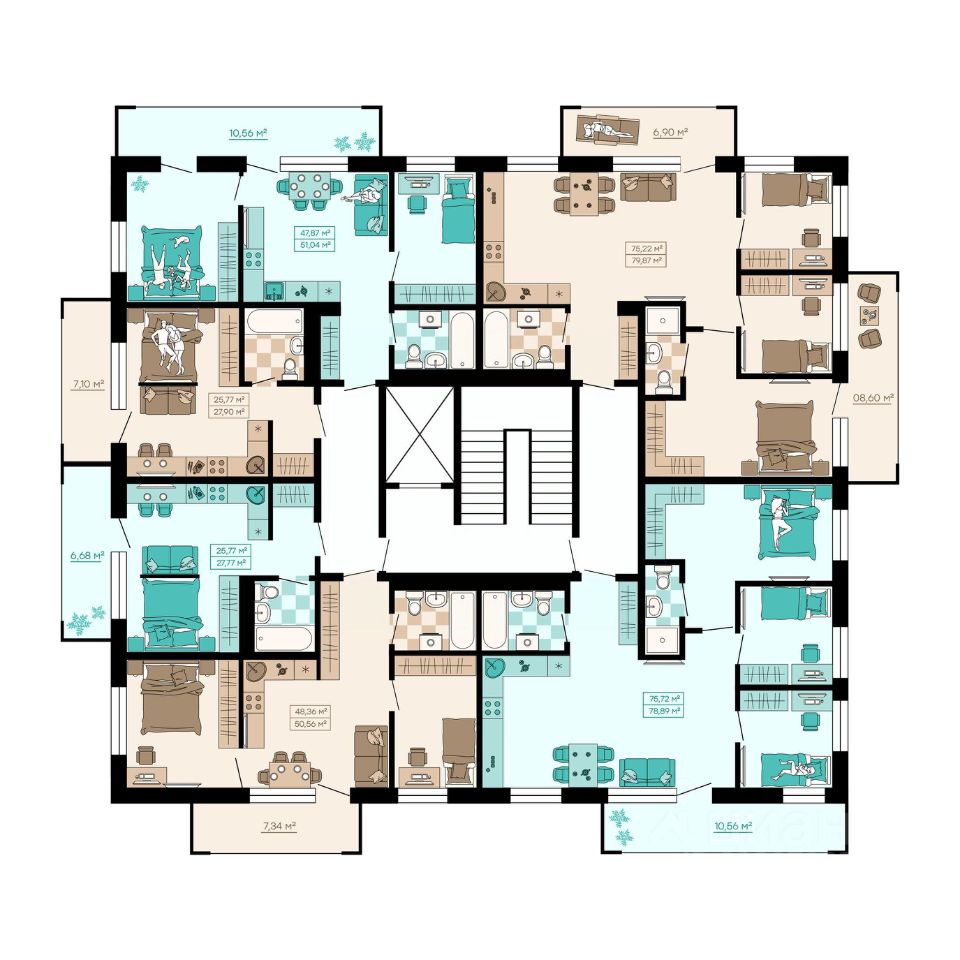 Отличительной особенностью проекта являются просторные индивидуальные террасы на первых этажах площадью до 65 кв. м, открывающие безграничные возможности для обустройства собственного сада, пространства для барбекю, персонального пляжа с шезлонгами или рабочей зоны на открытом воздухе.