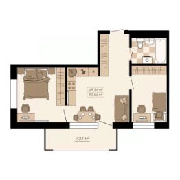 Общая площадь50,56 м²