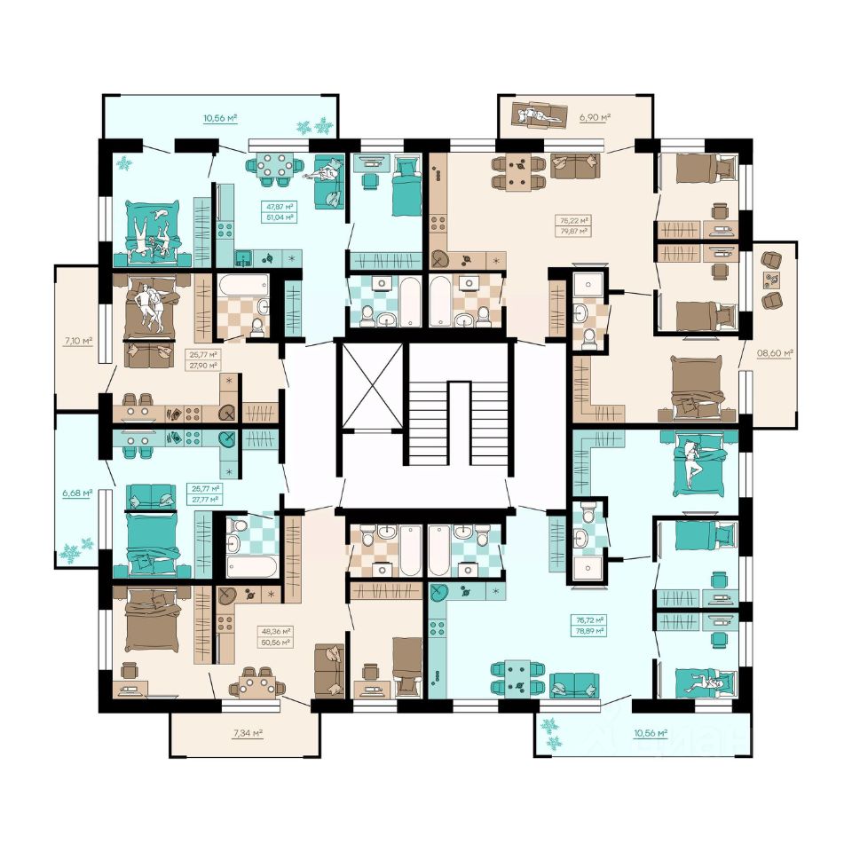 Квартиры формата Smart Comfort + (смарт комфорт +) площадью от 32 кв. м до 136 кв. м предоставляют свободу в реализации планировочных решений, а высота потолков 2,7 м с увеличенными панорамными окнами 2,45 м обеспечивают высокий уровень естественного освещения и открывают завораживающий обзор на лесной массив загородной местности.