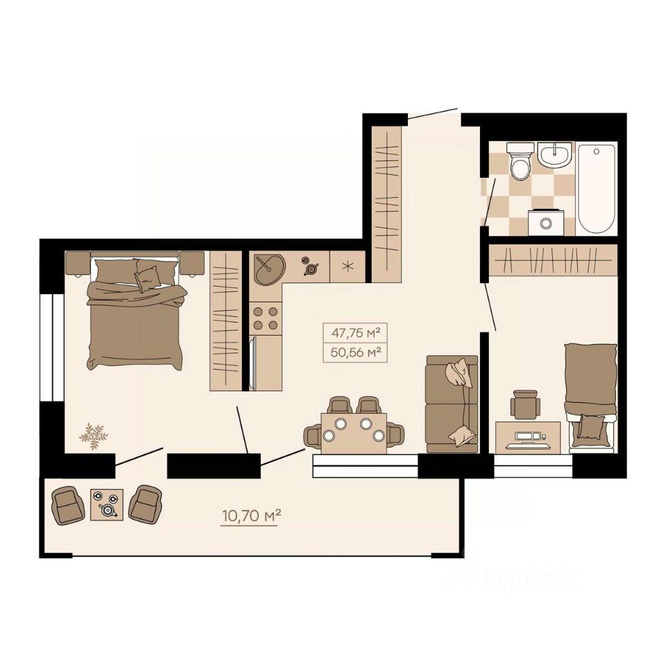 Квартиры формата Smart Comfort + (смарт комфорт +) площадью от 32 кв. м до 136 кв. м предоставляют свободу в реализации планировочных решений, а высота потолков 2,7 м с увеличенными панорамными окнами 2,45 м обеспечивают высокий уровень естественного освещения и открывают завораживающий обзор на лесной массив загородной местности.