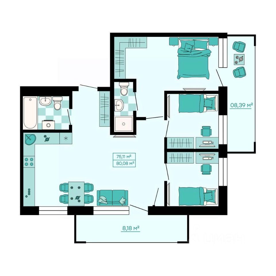 Общая площадь80,08 м²