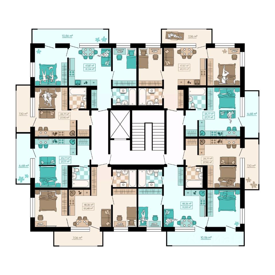 Квартиры формата Smart Comfort + (смарт комфорт +) площадью от 32 кв. м до 136 кв. м предоставляют свободу в реализации планировочных решений, а высота потолков 2,7 м с увеличенными панорамными окнами 2,45 м обеспечивают высокий уровень естественного освещения и открывают завораживающий обзор на лесной массив загородной местности.