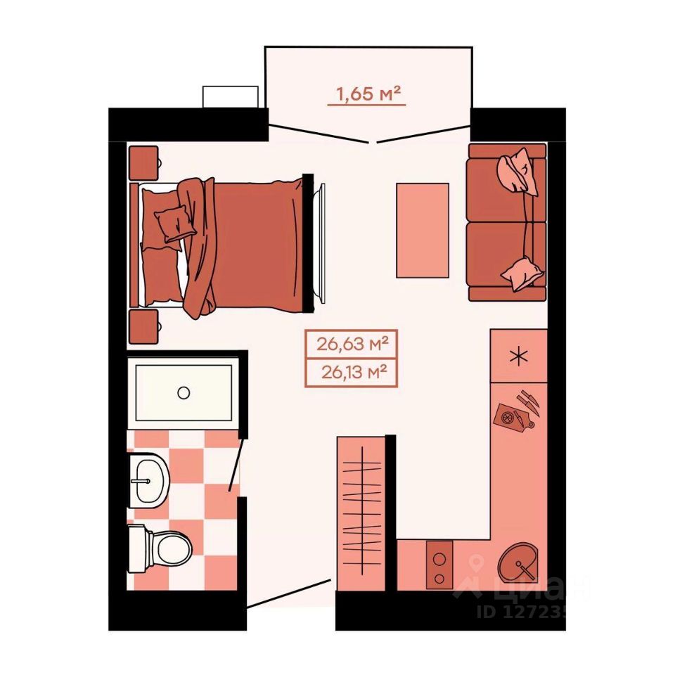 Общая площадь26,63 м²