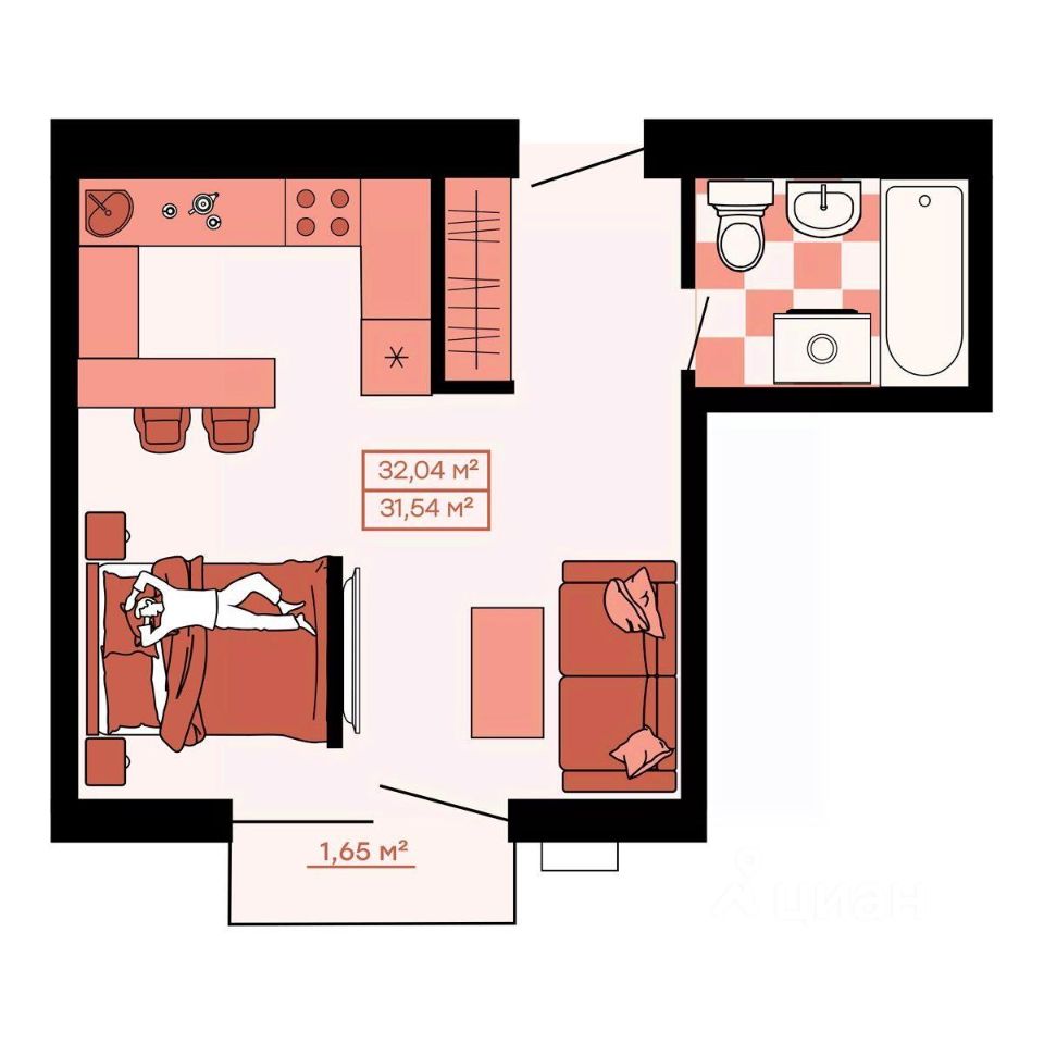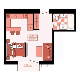 Общая площадь32,04 м²