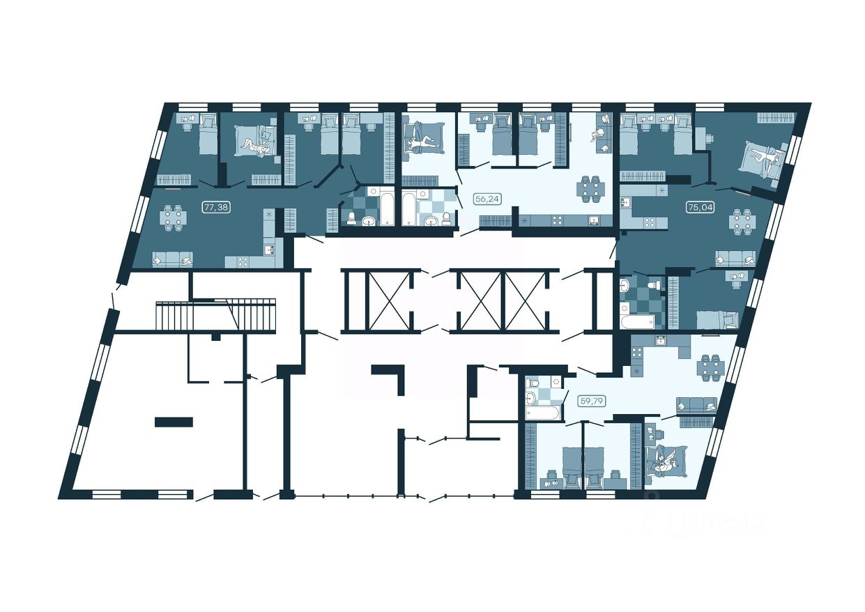 2 очередь - квартиры от 56,24 м2 до 78,09 м2