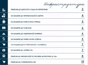 - концепция "город в городе"  все необходимые для жизни магазины и сервисы на территории ЖК;