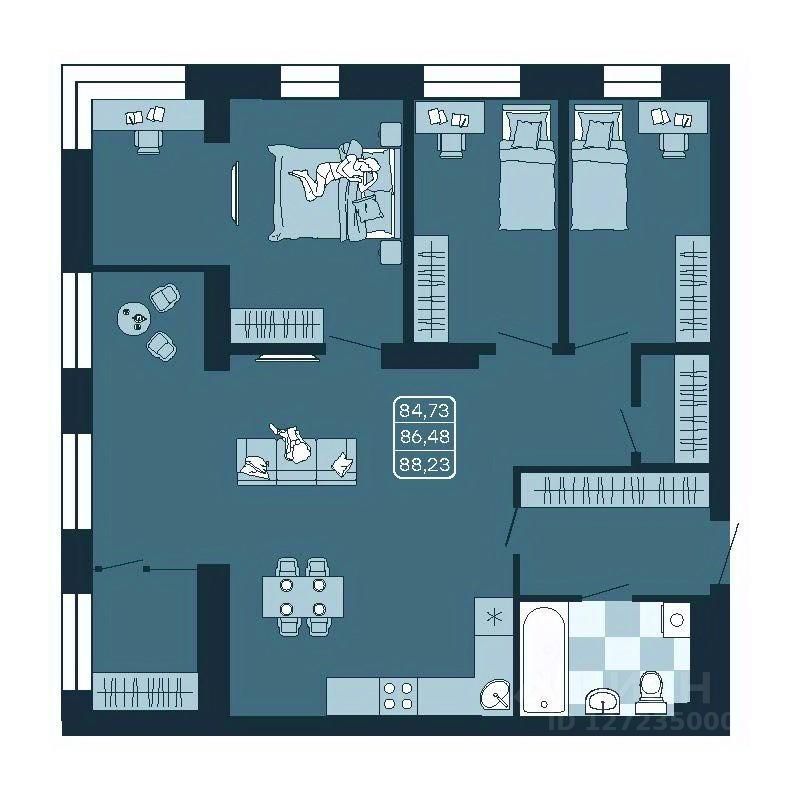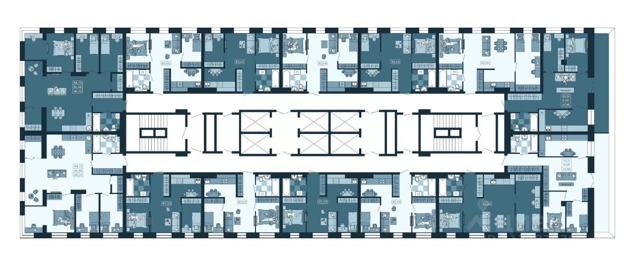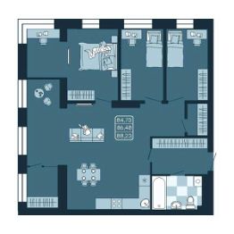 1 очередь - квартиры от 39,73 м2 до 86,48 м2
