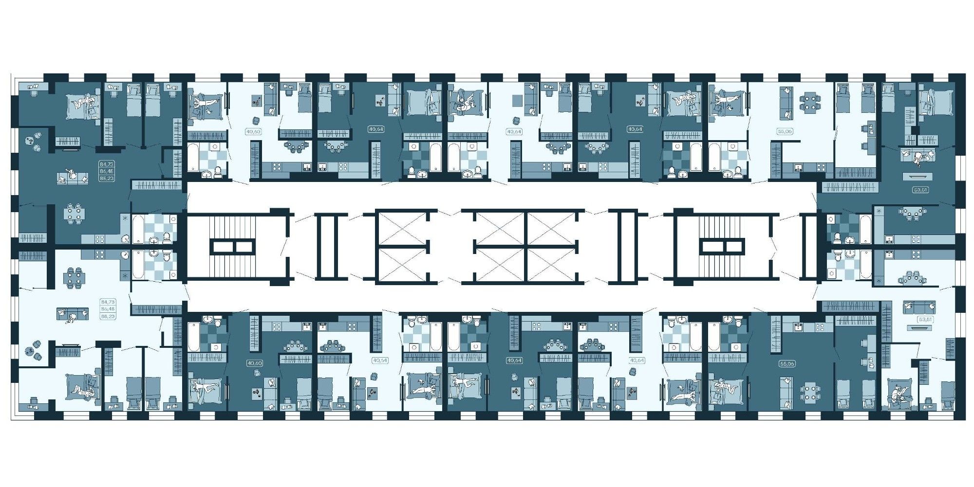 1 очередь - квартиры от 39,73 м2 до 86,48 м2