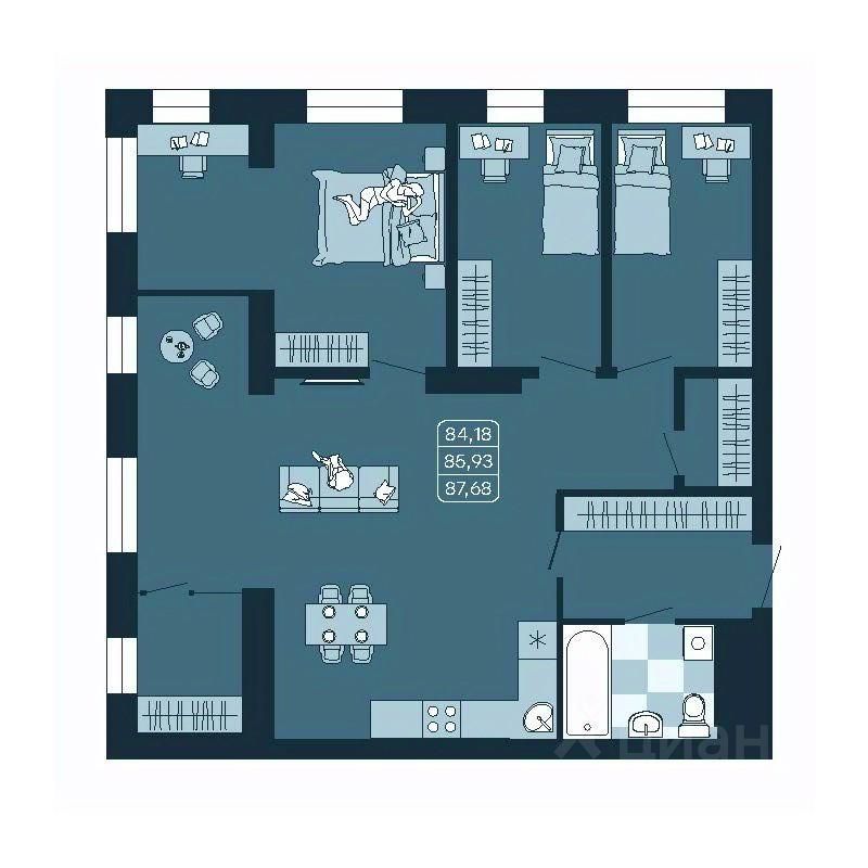 1 очередь - квартиры от 39,73 м2 до 86,48 м2