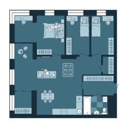 1 очередь - квартиры от 39,73 м2 до 86,48 м2