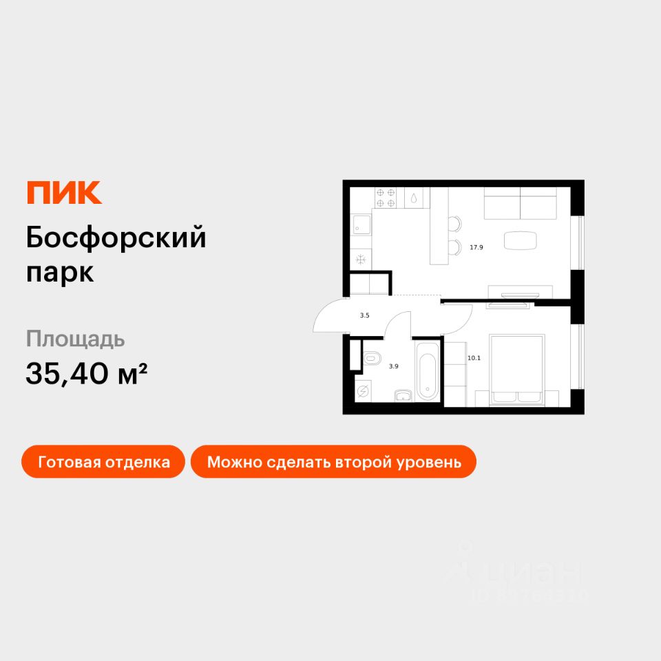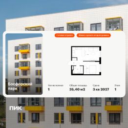 Продаётся 1-комн. квартира площадью 35,4 кв.м на 1 этаже 9 этажного дома (Корпус 9, Секция 1) проекта ПИК Босфорский парк. Светлый просторный подъезд на уровне земли, функциональная планировка, большие окна, c отделкой.