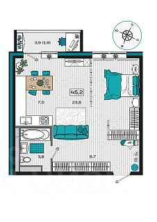 Продаётся 1-комнатная квартира в строящемся доме (Дом 1), срок сдачи: I-кв. 2026, общей площадью 45.2 кв.м., на 2 этаже. Новый жилой комплекс "Солнечный" от Специализированного застройщика "ДВИЦ-1" расположен по адресу: г. Уссурийск, мкр. Радужный, по ул. Солнечная.