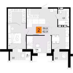 Продаётся 2-комнатная квартира в строящемся доме (Дом 1 (2 этап)), срок сдачи: III-кв. 2026, общей площадью 62.9 кв.м., на 9 этаже. "Горизонты" - новый жилой комплекс в самом центре Уссурийска.
