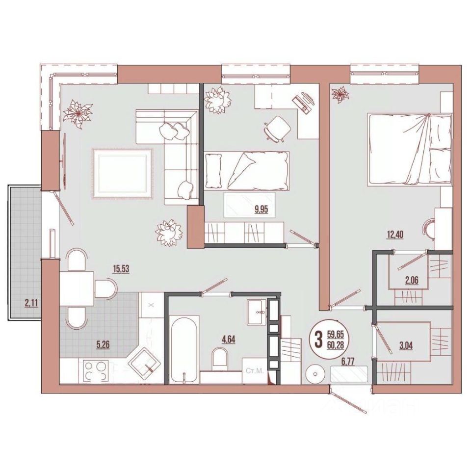 Продаётся 3-комнатная квартира в строящемся доме (Корпус 1), срок сдачи: III-кв. 2026, общей площадью 60.28 кв.м., на 5 этаже. Новый жилой дом от застройщика "СЗ Стоунлэнд" расположен по адресу: Россия, Приморский край, Владивосток, улица Адмирала Юмашева