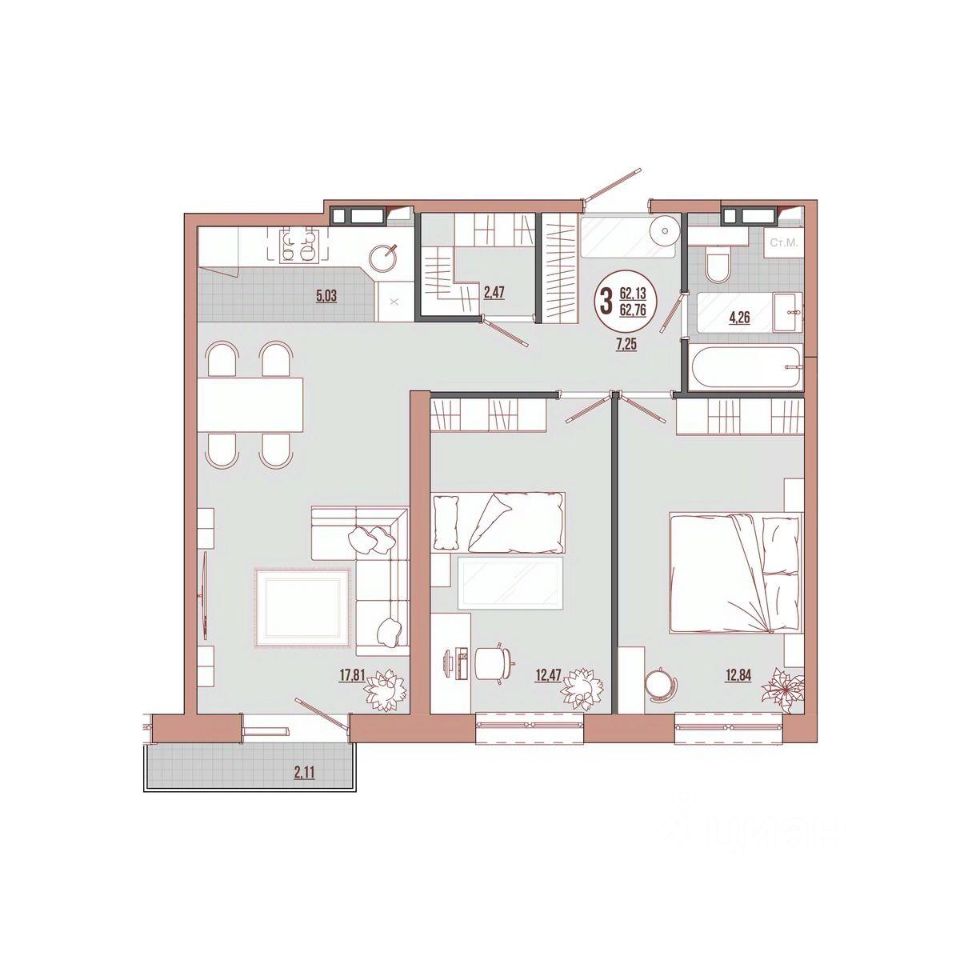 Продаётся 3-комнатная квартира в строящемся доме (Корпус 1), срок сдачи: III-кв. 2026, общей площадью 62.76 кв.м., на 11 этаже. Новый жилой дом от застройщика "СЗ Стоунлэнд" расположен по адресу: Россия, Приморский край, Владивосток, улица Адмирала Юмашева