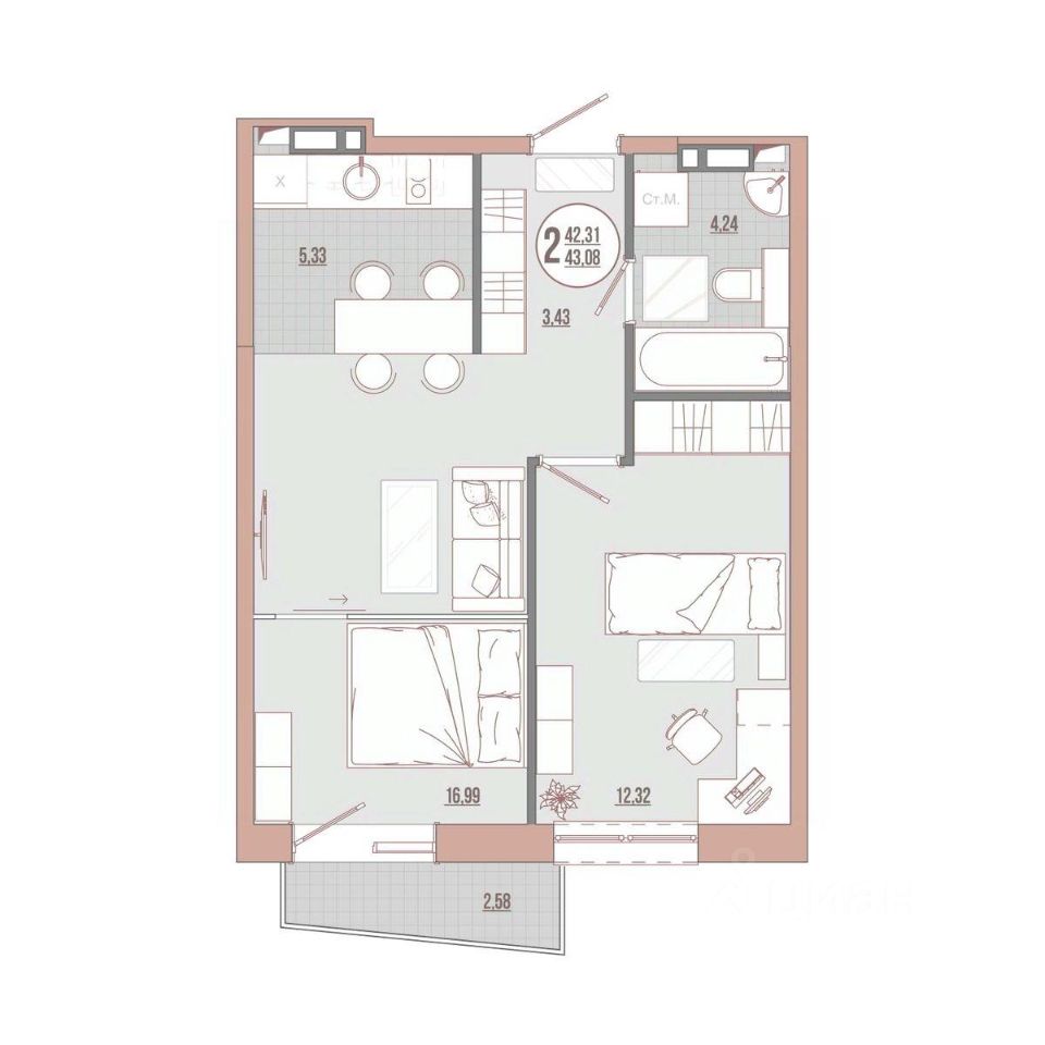 Продаётся 2-комнатная квартира в строящемся доме (Корпус 1), срок сдачи: III-кв. 2026, общей площадью 43.08 кв.м., на 16 этаже. Новый жилой дом от застройщика "СЗ Стоунлэнд" расположен по адресу: Россия, Приморский край, Владивосток, улица Адмирала Юмашева