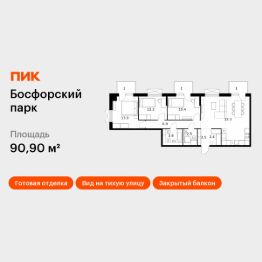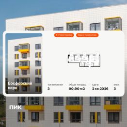 Продаётся 3-комн. квартира площадью 90,9 кв.м на 3 этаже 9 этажного дома (Корпус 6, Секция 1) проекта ПИК Босфорский парк. Светлый просторный подъезд на уровне земли, функциональная планировка, большие окна, c отделкой.