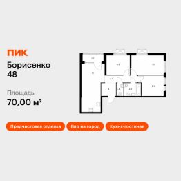 Продаётся 3-комн. квартира площадью 70 кв.м на 19 этаже 28 этажного дома (Корпус 2, Секция 2) проекта ПИК Борисенко 48. Светлый просторный подъезд на уровне земли, функциональная планировка, большие окна, предчистовая отделка.