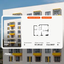 Продаётся 2-комн. квартира площадью 57,4 кв.м на 6 этаже 9 этажного дома (Корпус 10, Секция 1) проекта ПИК Босфорский парк. Светлый просторный подъезд на уровне земли, функциональная планировка, большие окна, предчистовая отделка.