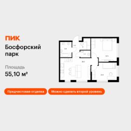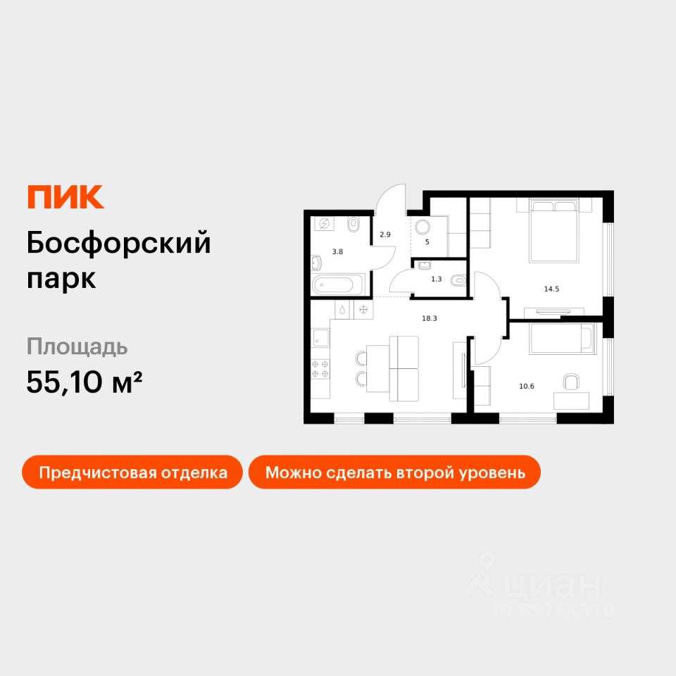 Продаётся 2-комн. квартира площадью 55,1 кв.м на 1 этаже 9 этажного дома (Корпус 10, Секция 1) проекта ПИК Босфорский парк. Светлый просторный подъезд на уровне земли, функциональная планировка, большие окна, предчистовая отделка.