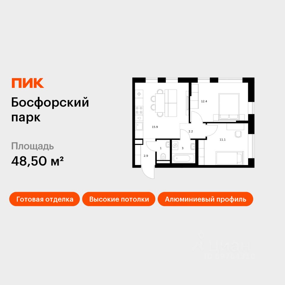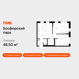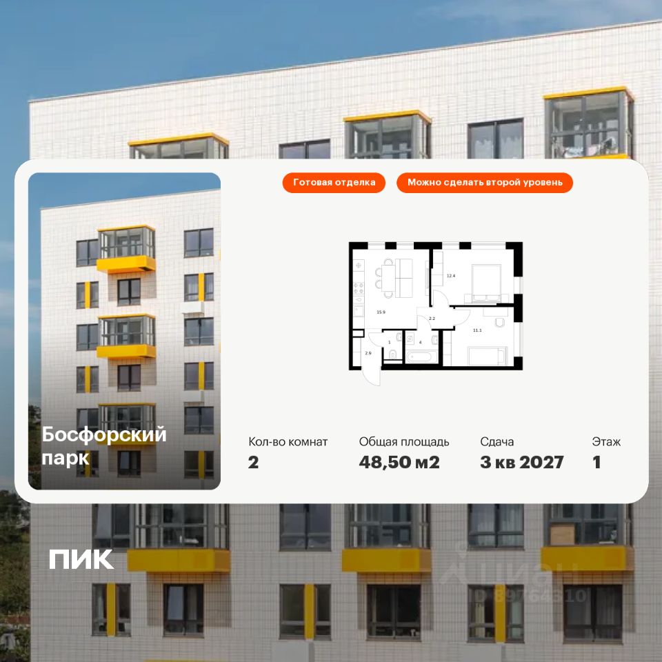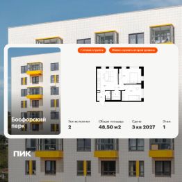 Продаётся 2-комн. квартира площадью 48,5 кв.м на 1 этаже 9 этажного дома (Корпус 9, Секция 1) проекта ПИК Босфорский парк. Светлый просторный подъезд на уровне земли, функциональная планировка, большие окна, c отделкой.