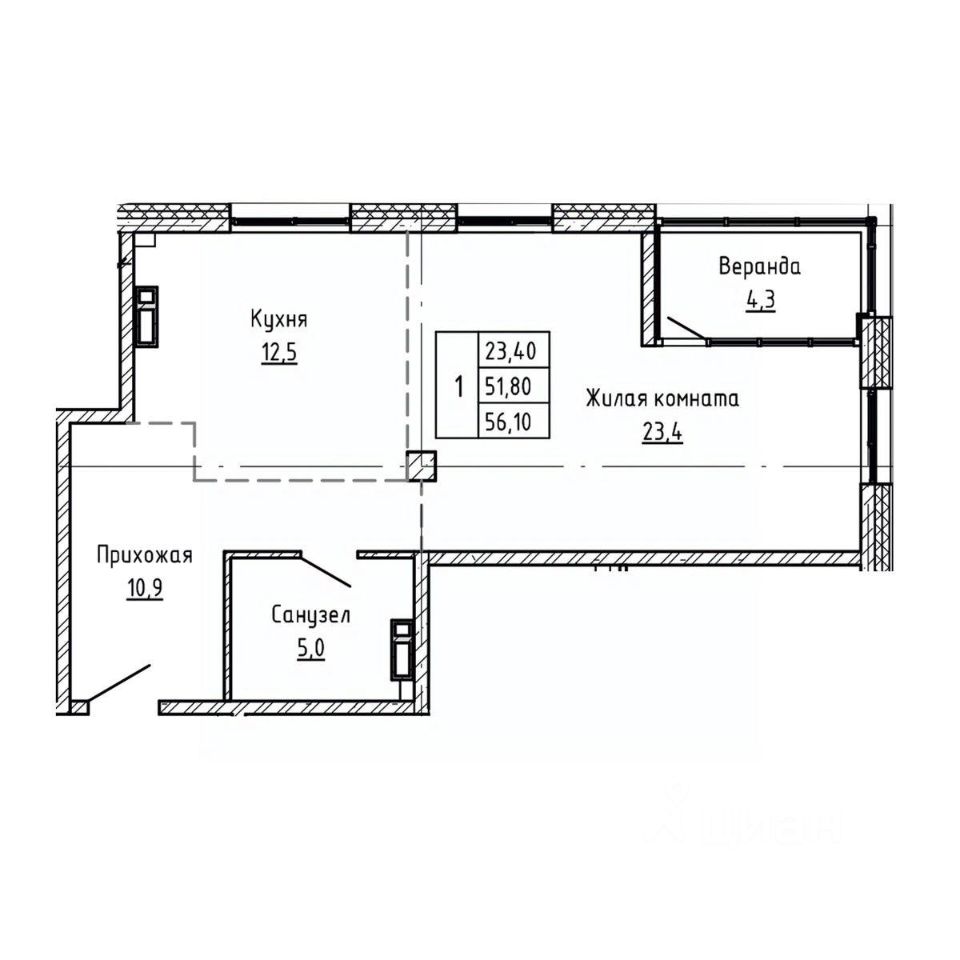 Общая площадь56,1 м²
