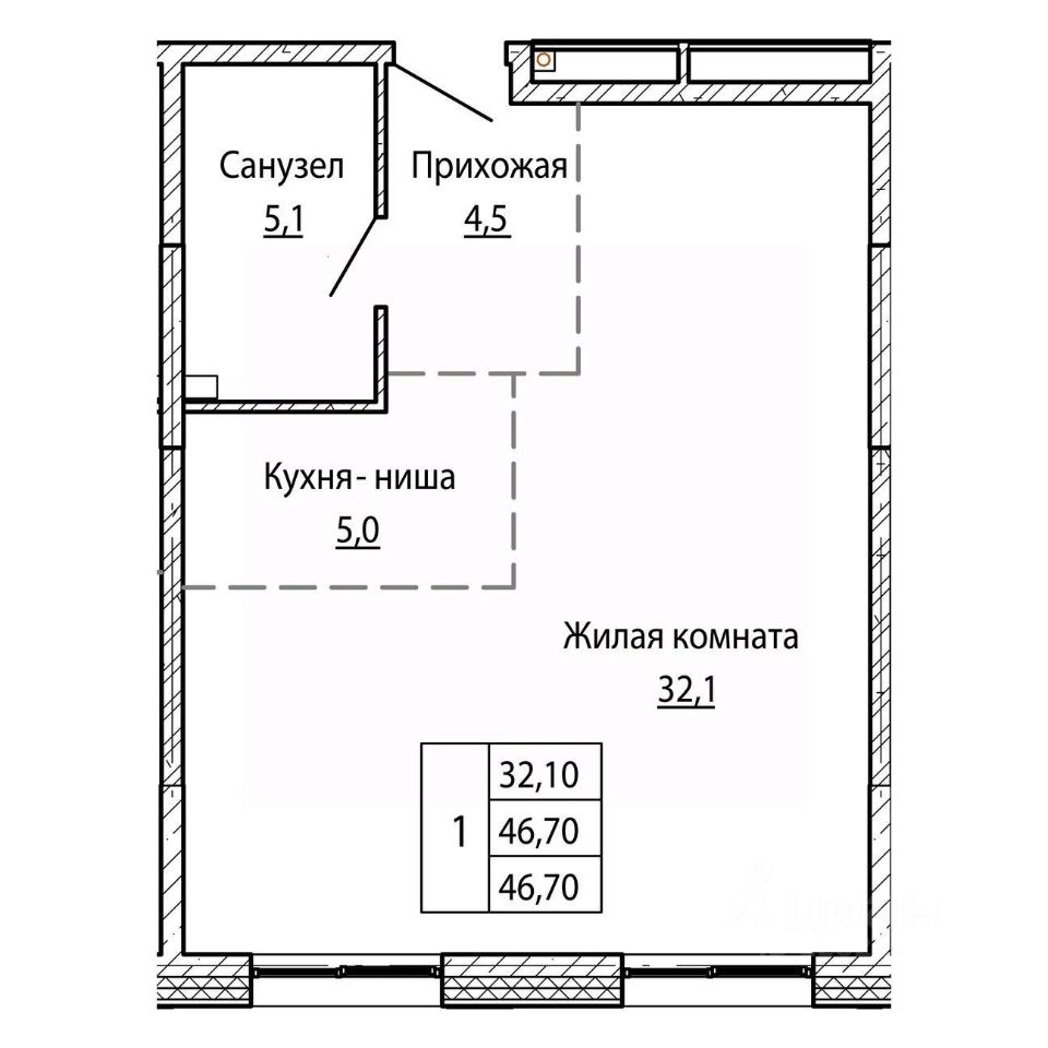Общая площадь46,7 м²