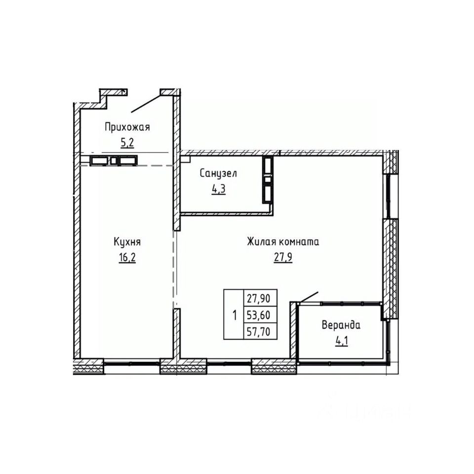 Общая площадь57,7 м²