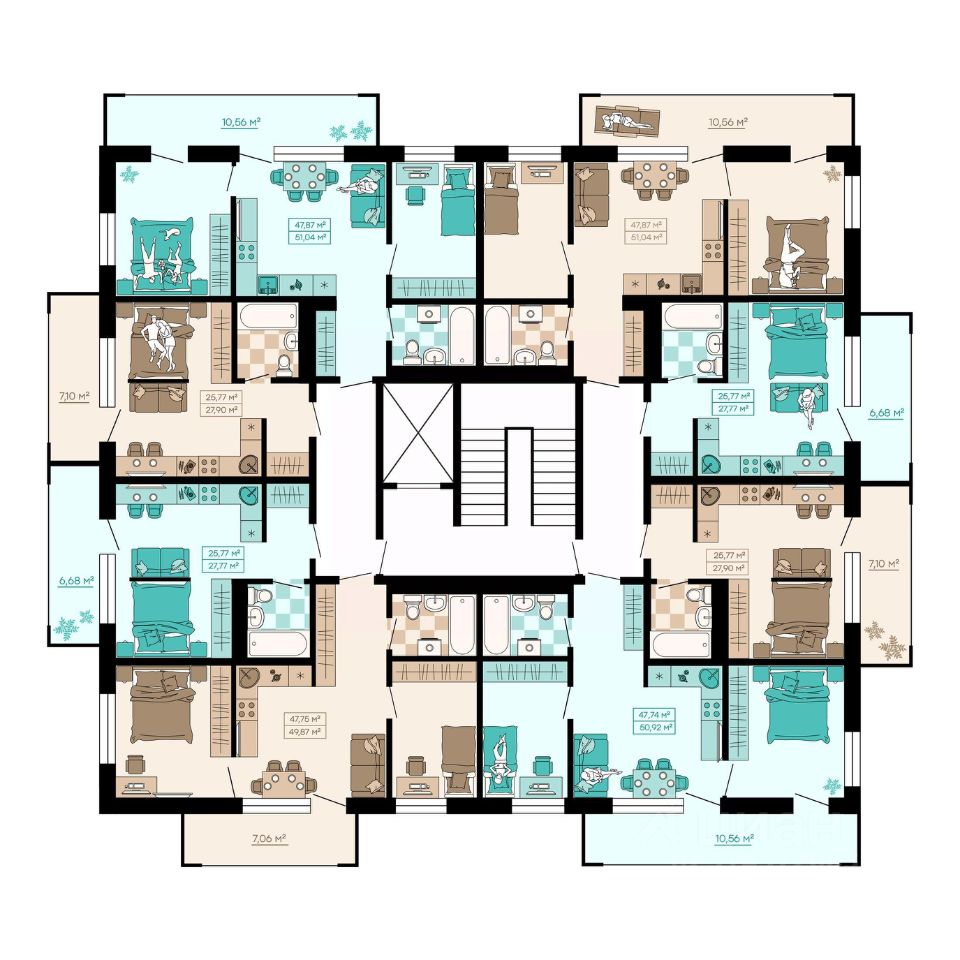 Квартиры формата Smart Comfort + (смарт комфорт +) площадью от 32 кв. м до 136 кв. м предоставляют свободу в реализации планировочных решений, а высота потолков 2,7 м с увеличенными панорамными окнами 2,45 м обеспечивают высокий уровень естественного освещения и открывают завораживающий обзор на лесной массив загородной местности.