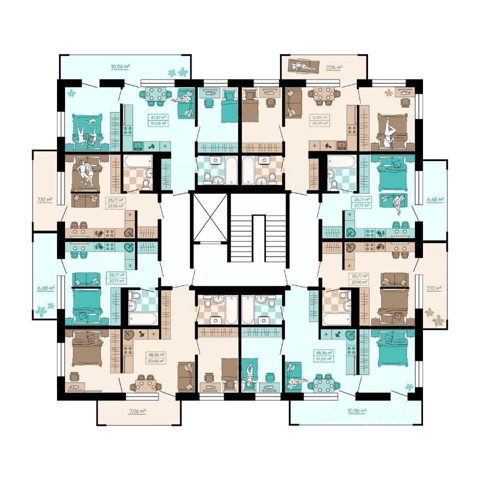Квартиры формата Smart Comfort + (смарт комфорт +) площадью от 32 кв. м до 136 кв. м предоставляют свободу в реализации планировочных решений, а высота потолков 2,7 м с увеличенными панорамными окнами 2,45 м обеспечивают высокий уровень естественного освещения и открывают завораживающий обзор на лесной массив загородной местности.