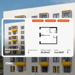 Продаётся 1-комн. квартира площадью 35,2 кв.м на 2 этаже 9 этажного дома (Корпус 9, Секция 1) проекта ПИК Босфорский парк. Светлый просторный подъезд на уровне земли, функциональная планировка, большие окна, c отделкой.