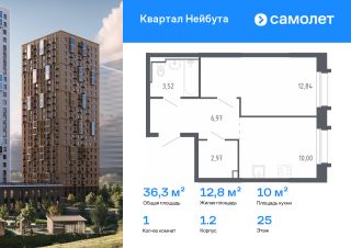 Предлагается 1-комнатная квартира комфорт-класса 36,3 кв.м в корпусе 1.2 на 25 этаже, в ЖК "Квартал Нейбута"